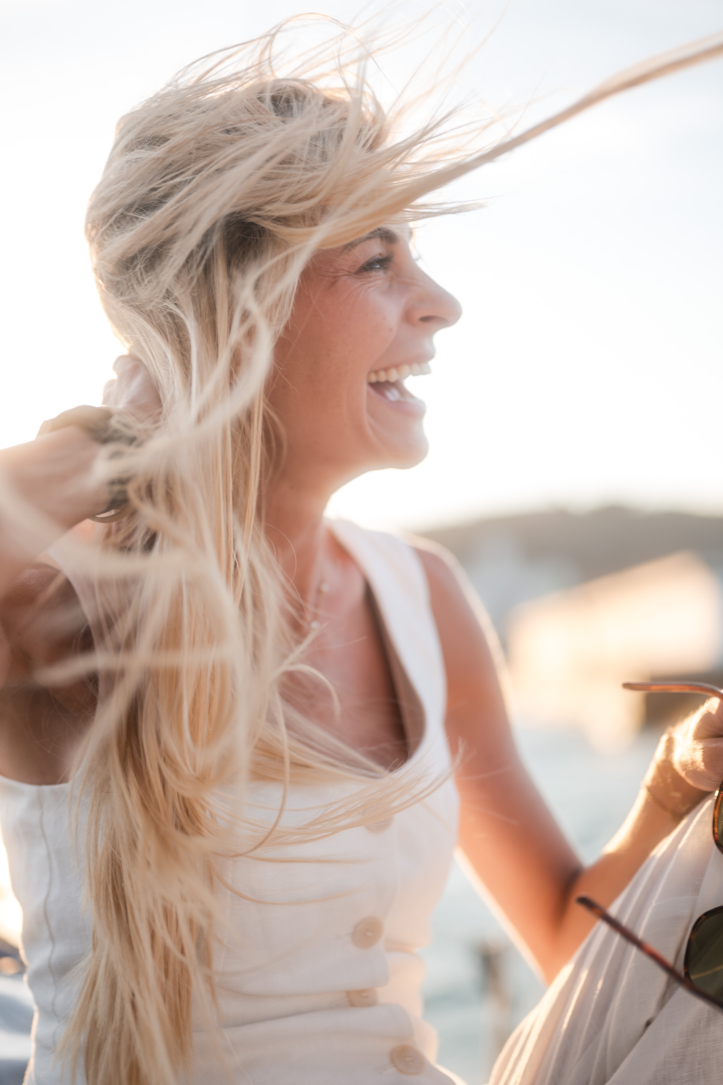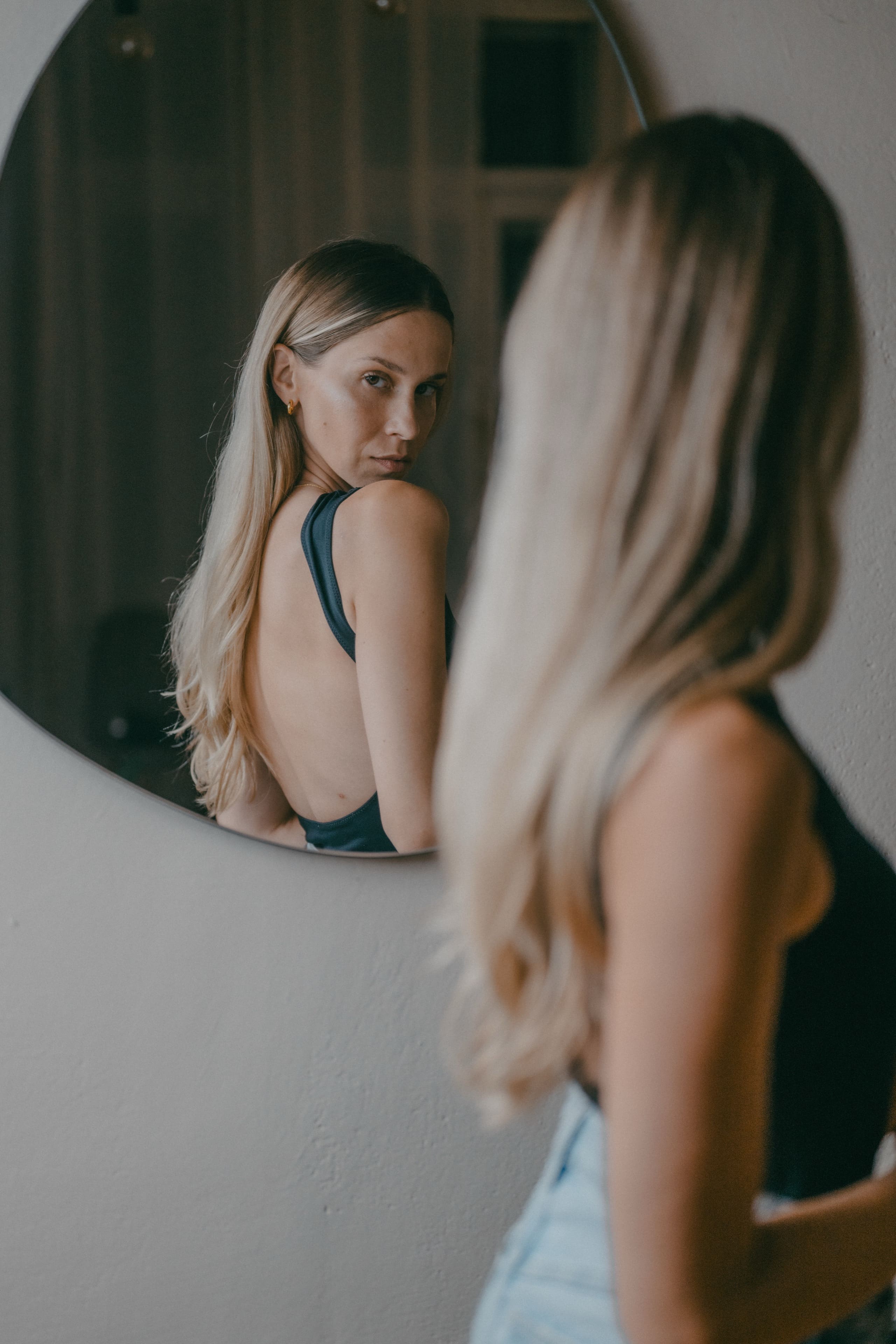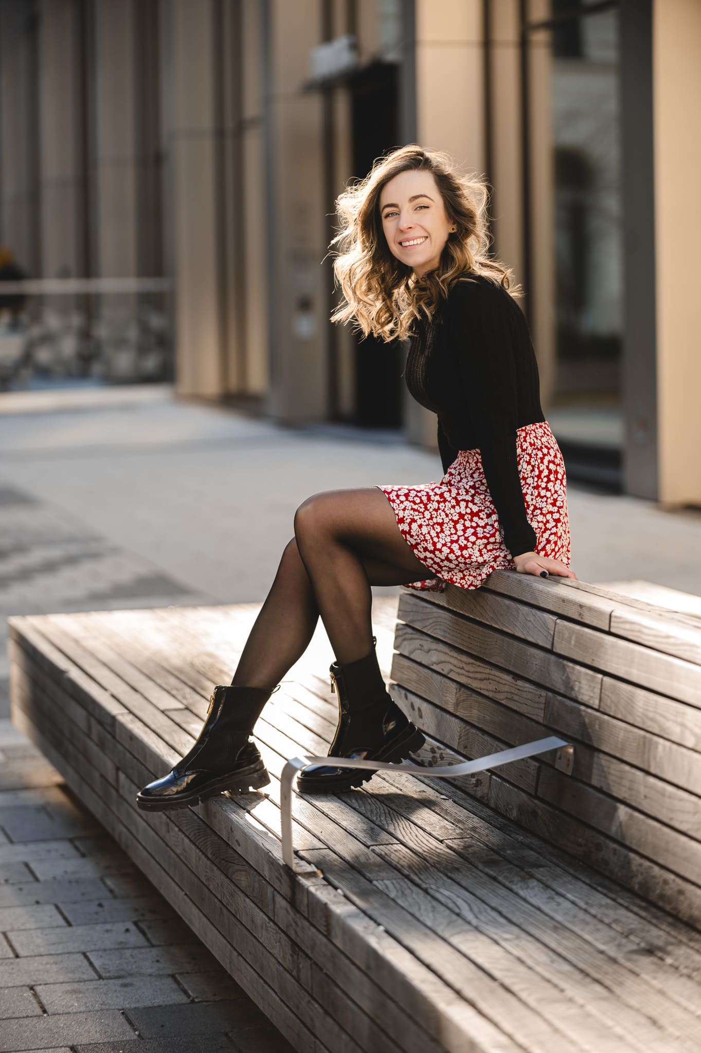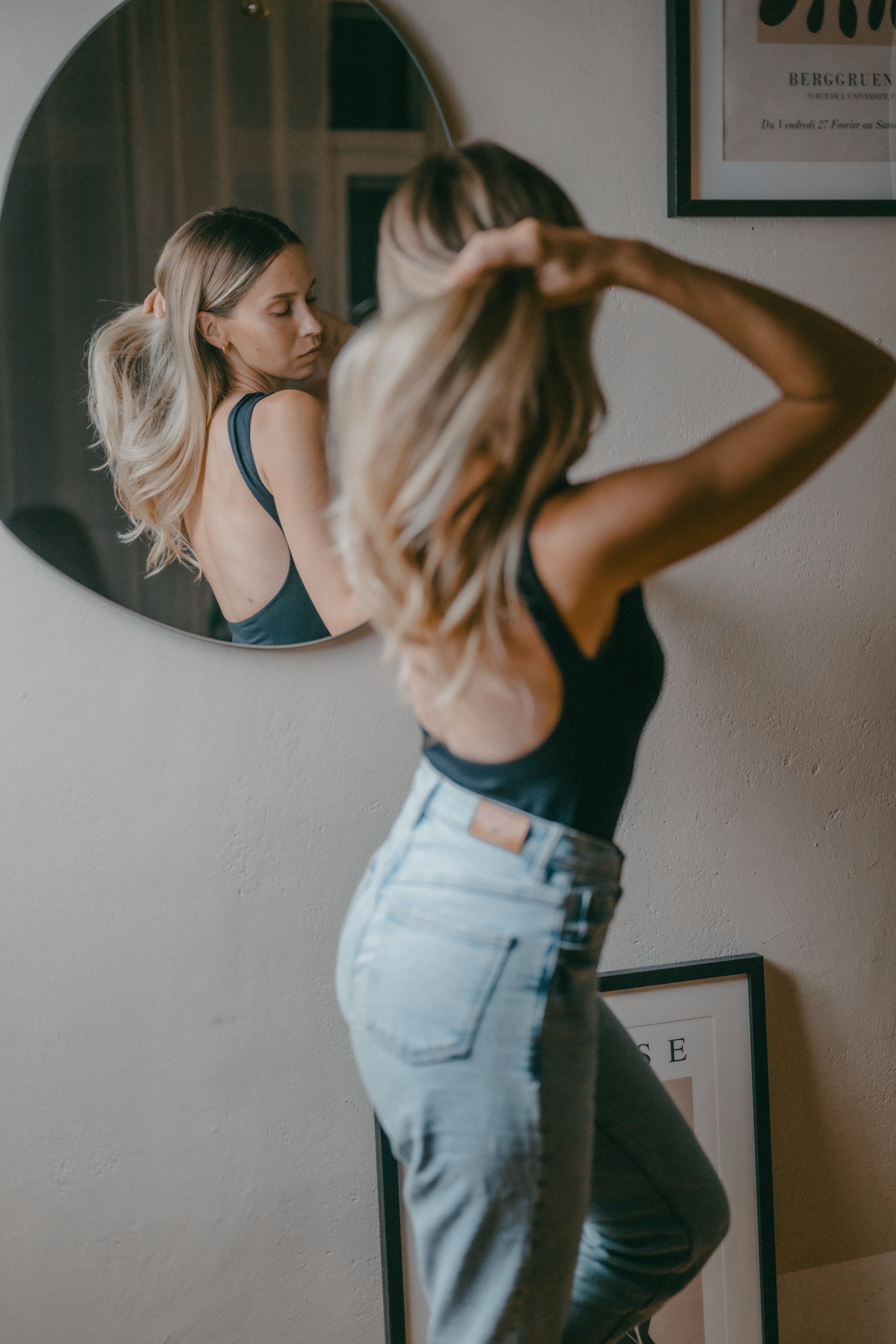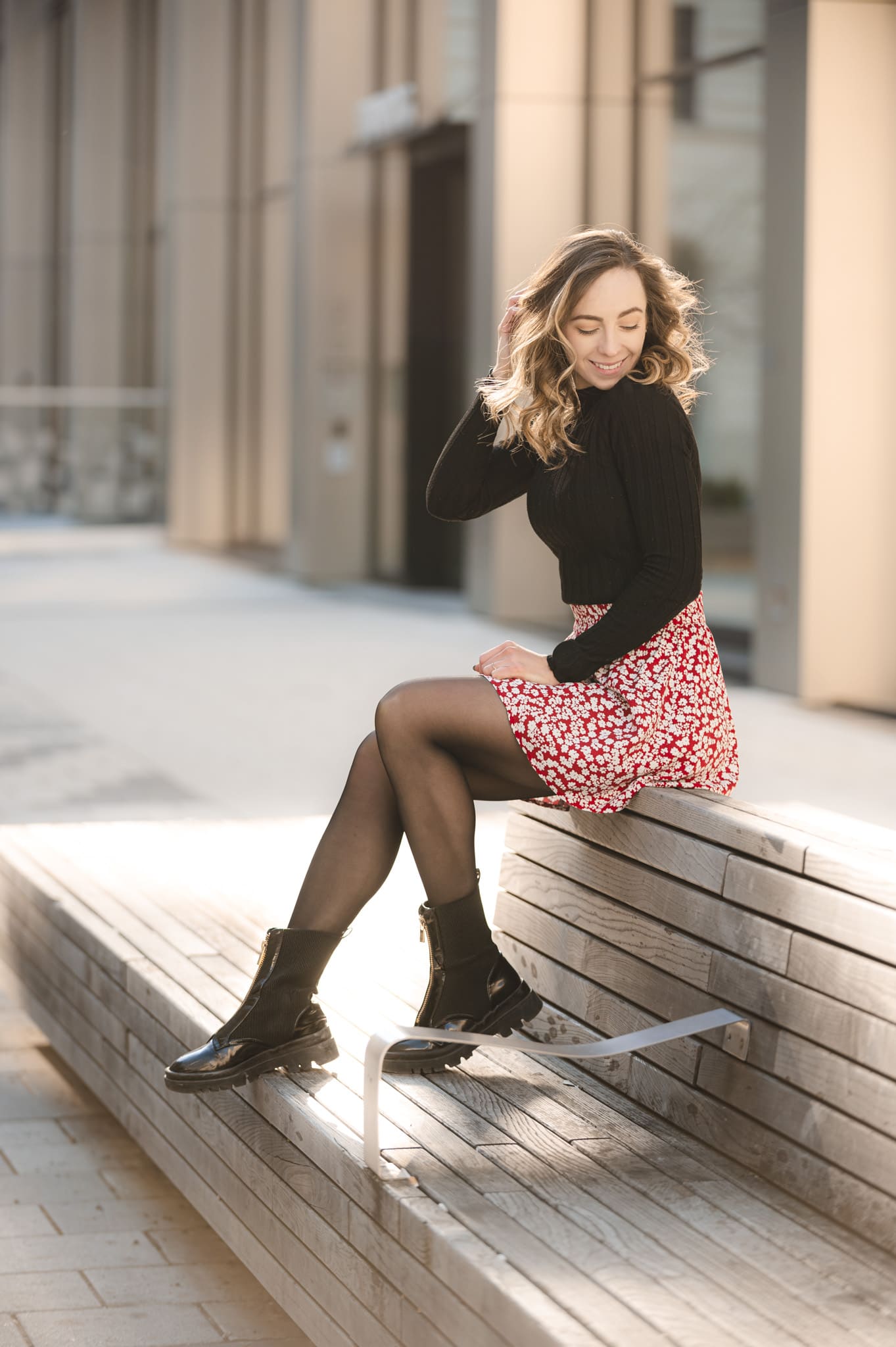 Frau liegt entspannt auf weißer Bettdecke, Augen geschlossen, trägt schwarzes Top und lange schwarze Handschuhe, dunkles gewelltes Haar ausgebreitet. Frau in schimmerndem, halbtransparentem Abendkleid und schwarzen High Heels bückt sich auf einem gepflasterten Gehweg bei Nacht, Blick zur Seite, umgeben von warmem Straßenlaternenlicht. Nahaufnahme einer lächelnden Frau mit langen blonden Haaren und weißem Top, die im warmen Gegenlicht draußen sich die Haare zurückstreicht. Frau in schwarzer Lingerie mit langen schwarzen Handschuhen und funkelnder Halskette liegt auf weißer Bettwäsche, dunkles lockiges Haar ausgebreitet, blickt seitlich. Frau mit langen blonden Haaren sitzt lachend auf einem hellen Außensofa, hält ein Tablet und einen Stift, trägt hellblaues Hemd und Jeansshorts; im Hintergrund ein unscharfes mehrstöckiges Gebäude. Frau in schwarzem, rückenfreiem Kleid und schwarzen High Heels lehnt elegant über das Balkongeländer, unscharfe Wohnhäuser und Dämmerungslichter im Hintergrund. Sportliche junge Frau im schwarzen Sporttop, die sich lächelnd die Haare zu einem Dutt bindet, vor einer verfallenen, mit Graffiti bedeckten Industriehalle. Eine Frau in einem langen, transparent schimmernden Abendkleid und hohen Pumps steht nachts auf einem gepflasterten Weg vor modernen Gebäuden, das Haar vom Wind bewegt, sie blickt seitlich. Lächelnde blonde Frau mit Sonnenbrille auf dem Kopf, hellem Strickpullover und schwarzem Schulterriemen, unscharfer Promenadenhintergrund mit Palmen. Frau sitzt barfuß seitlich auf einem schwarzen Stuhl, Kopf nach hinten geneigt und Augen geschlossen, trägt weiße Bluse und helle Jeans, beleuchtet von einem kreisrunden Scheinwerfer mit Schatten an der Wand. Seitliches Porträt einer lächelnden Frau mit geschlossenen Augen, die in einem Stuhl zurückgelehnt ist; langes blondes Haar weht, sie trägt eine weiße Bluse und helle Jeans vor einer hellen Wand mit Schatten. Frau sitzt lächelnd auf einer Holzbank in einer Stadtpassage, blickt zur Seite und berührt ihr Haar; sie trägt einen schwarzen Pullover, roten Rock mit weißem Blumenmuster, schwarze Strumpfhose und schwarze Stiefel, warmes Seitenlicht beleuchtet die Szene. Frau mit langen blonden Haaren und neutralem Blick sitzt locker auf einem hellgrauen Sofa, trägt schwarzes Spaghettiträger-Top und schwarze Hose, Hände locker vor dem Körper, Stehlampe im Hintergrund. Junge Frau mit langen blonden Haaren in schwarzem Spaghettiträger-Top und hoher schwarzer Hose vor einer hellen Wand, Hände in der Hüfte, seitlich blickend, mit goldenen Ketten und Ohrringen. Frau im Profil vor großem rundem Licht, trägt schwarzes Spaghettiträger-Top, lange helle Haare und goldene Ketten, ruhiger Gesichtsausdruck. Junge blonde Frau sitzt auf dem Sofa, hält ein Smartphone und hat einen Stift im Mund, schaut nachdenklich; unscharfer Küchenhintergrund mit einer stehenden Person. Seitliches Porträt einer jungen Frau in schwarzer Kleidung, barfuß auf einem Stuhl sitzend mit angewinkelten Beinen vor einem großen, runden, orangefarbenen Lichtkreis an der Wand. Junge Frau sitzt barfuß auf sandigem Boden, umarmt die angewinkelten Beine, trägt ein weißes gehäkeltes Oberteil und ein Fußkettchen, lange braune Haare, Blick zur Kamera, warme Abendstimmung vor grünen Büschen. Porträt einer jungen Frau mit dunkelblondem Haar in schwarzem Spaghettiträgertop, goldenen Ketten und Ohrringen, sitzend vor einer hellen, strahlenförmigen Lichtprojektion an der Wand, ernster Blick. Nachdenkliche Frau in Seitenansicht, sitzt auf einem Stuhl, trägt schwarzes Spaghettiträger-Top und zwei goldene Ketten, eine Hand an der Stirn, lange blonde Haare, vor einer Wand mit strahlenförmigem Lichtmuster. Seitliches Porträt einer jungen Frau in schwarzem Top, zurückgelehnt auf einem Stuhl, Augen geschlossen, langes Haar im warmen, runden Gegenlicht. Junge Frau mit schulterlangen lockigen Haaren hockt lächelnd auf einer Betonmauer vor einer gelb-orangeen Graffiti-Wand, trägt weißen Pullover, blaue Jeans und weiße Sneaker. Person in Sportkleidung sitzt nach vorn gebeugt auf einem Ergometer in einem Untersuchungsraum, trägt Atemmaske mit Messschlauch und Kopfhalterung; daneben zwei Monitore mit Messdaten, Arbeitswagen und Ventilator. Frau mit langen blonden Haaren sitzt barfuß zusammengekauert auf einem Stuhl, stützt den Kopf mit der Hand und blickt nach rechts, warm beleuchtetes Wohnzimmer mit Sofa im Hintergrund. Frau mit langen blonden Haaren in schwarzem, rückenfreiem Top steht vor einem runden Wandspiegel und blickt über die Schulter auf ihre Spiegelung. Frau mit langen blonden Haaren in schwarzem Spaghettiträger-Top und Jeans-Shorts steht im warmen Abendlicht, lächelt und streicht sich mit einer Hand durchs Haar, unscharfer historischer Steinbau im Hintergrund. Frau mit langen blonden Haaren in schwarzem Croptop und zerrissenen Jeansshorts steht auf sonniger Fußgängerstraße, schaut leicht zur Seite und streicht sich durchs Haar; unscharfer urbaner Hintergrund mit Passanten. Lächelnde Frau mit langen blonden Haaren und großer Sonnenbrille, trägt weißes Bandeau-Top und steht lässig an einer Steinmauer im warmen Gegenlicht. Junge Frau hockt lächelnd vor einer bunten Graffitiwand, trägt weißen Pullover, hochgekrempelte Jeans und weiße Sneaker. Junge Frau mit schulterlangen, gewellten braunen Haaren in weißem Pullover und Jeans, die lächelnd ihr Kinn auf die Hand stützt, vor unscharfem, buntem Graffiti-Hintergrund. Junge Frau lacht, trägt schwarzen Steppmantel und gestepp­ten Anglerhut, helle Haarsträhnen, weißer Pullover und quer getragene schwarze Bauchtasche vor einer dunkel ornamentierten Metalltür. Lächelnde Frau vor verwitterter Steinmauer, Hände in der Taille, weißer Pullover, blaue Jeans und weiße Sneaker auf gepflastertem Boden. Frau in schwarzem Rock, Pullover, Strumpfhose und Stiefel dreht sich lächelnd in einer historischen Arkade mit gewölbten Bögen und hängenden Lat