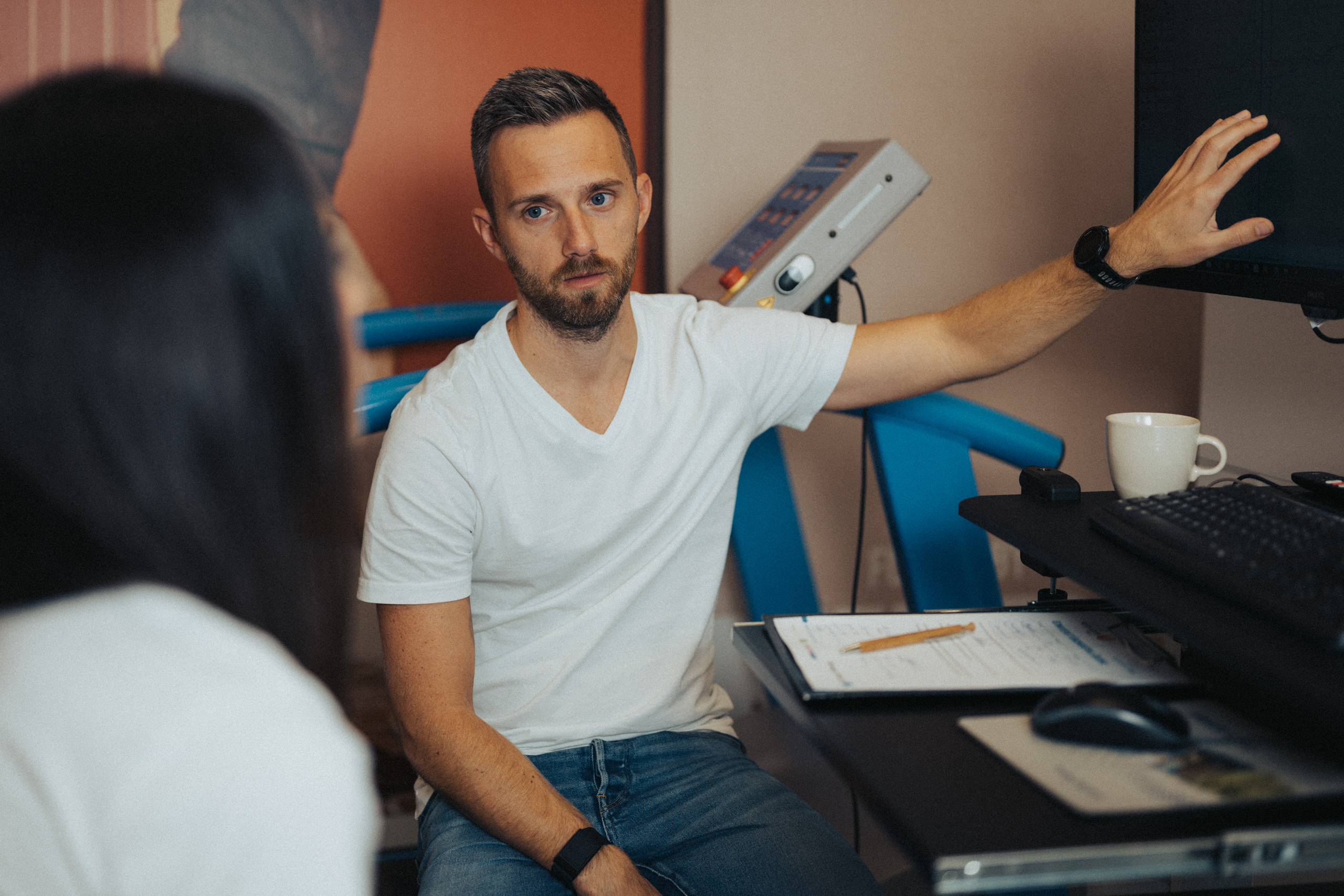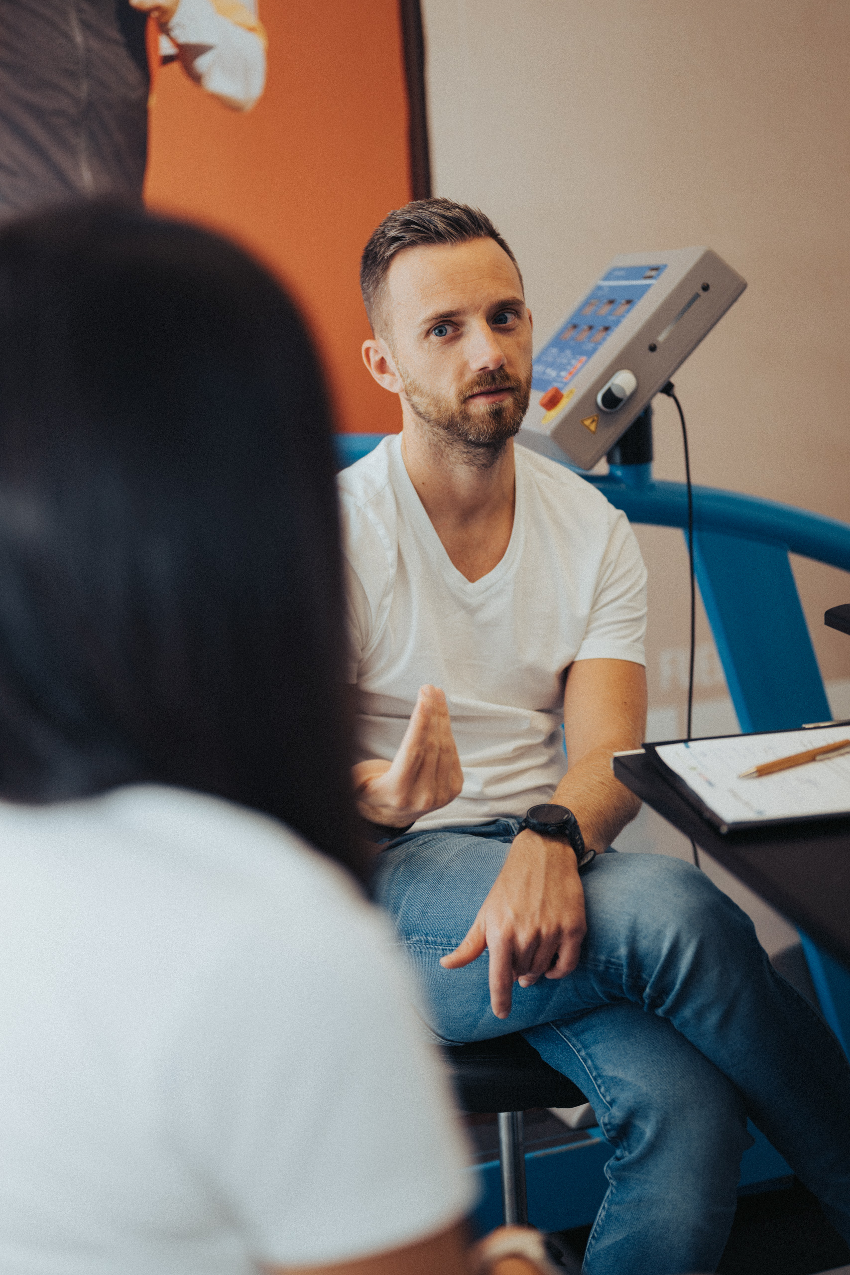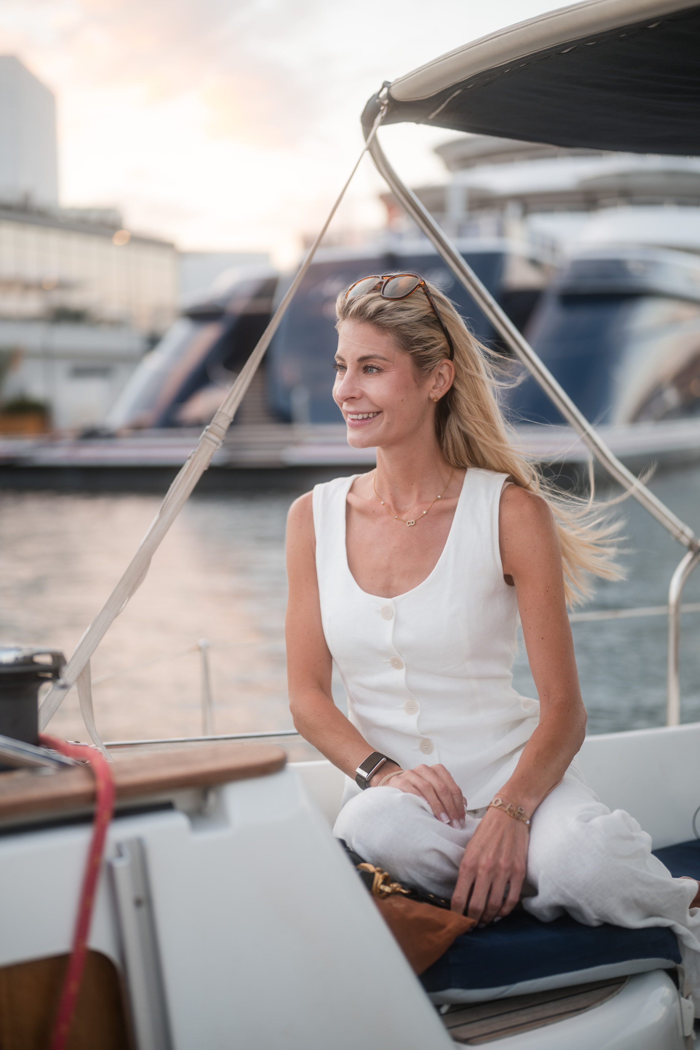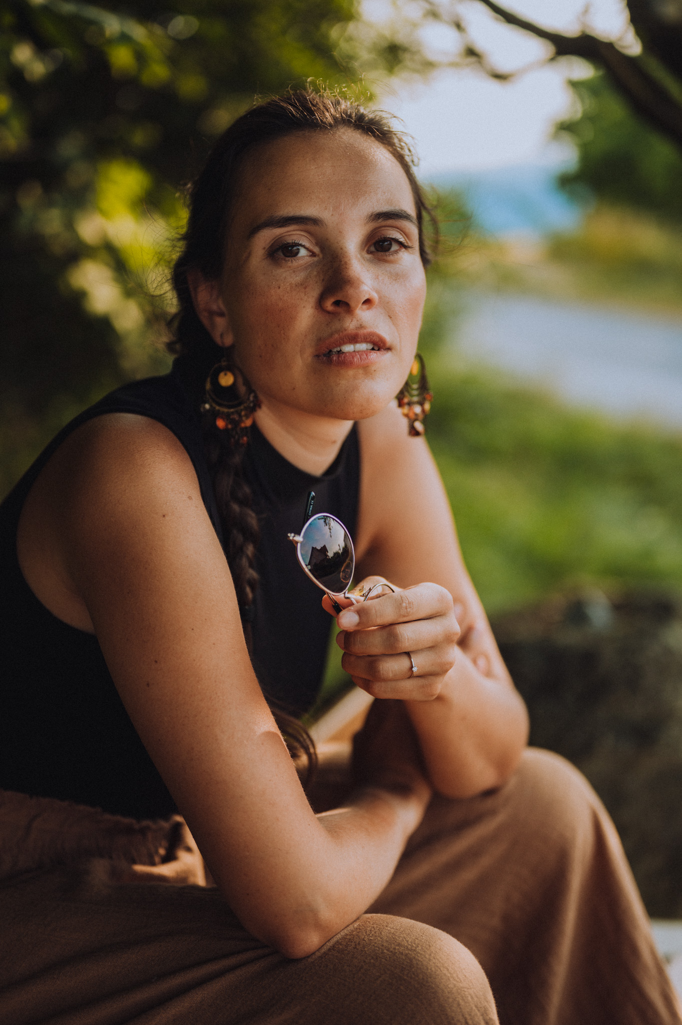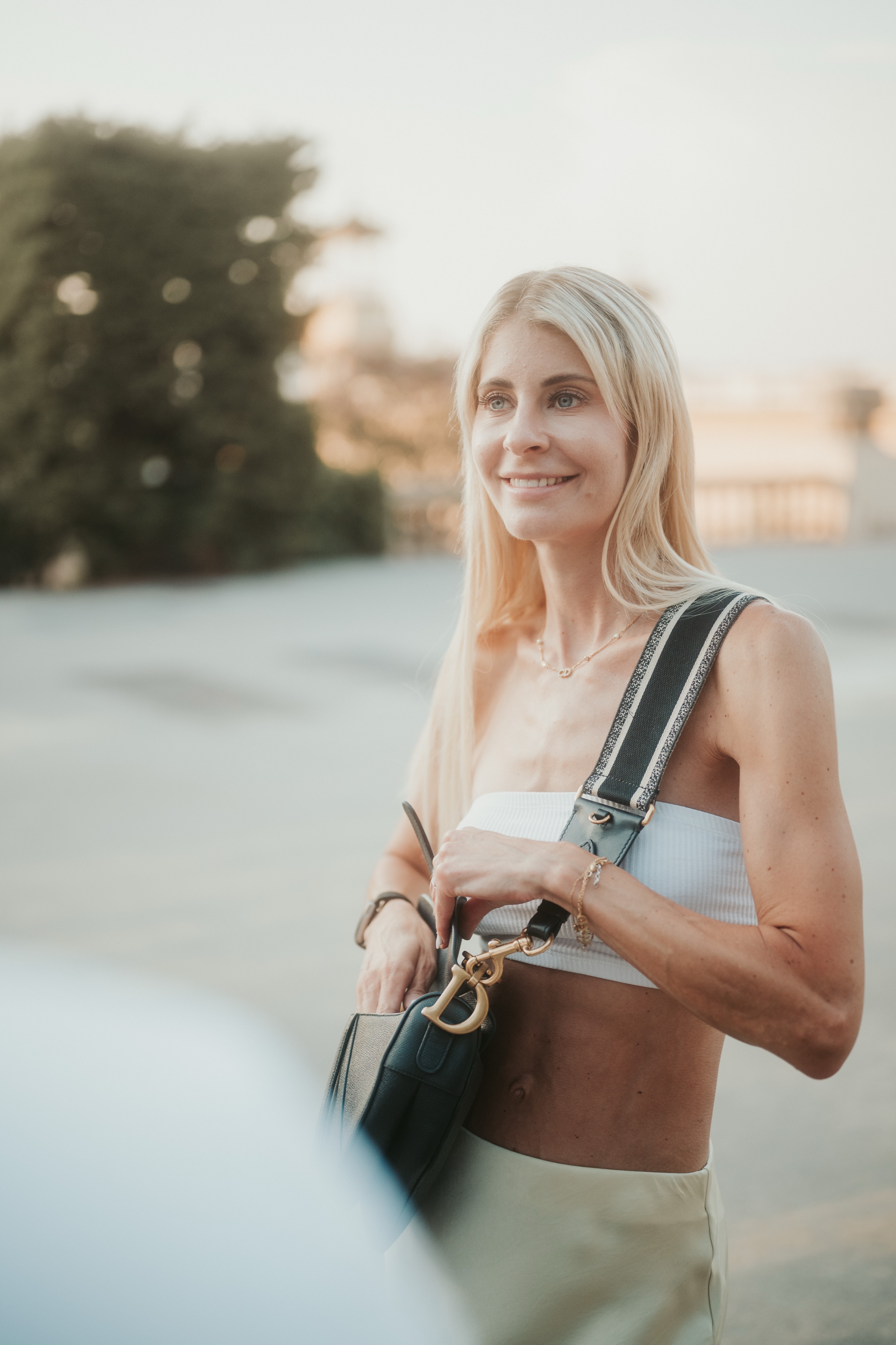 Frau liegt entspannt auf weißer Bettdecke, Augen geschlossen, trägt schwarzes Top und lange schwarze Handschuhe, dunkles gewelltes Haar ausgebreitet. Frau in schimmerndem, halbtransparentem Abendkleid und schwarzen High Heels bückt sich auf einem gepflasterten Gehweg bei Nacht, Blick zur Seite, umgeben von warmem Straßenlaternenlicht. Nahaufnahme einer lächelnden Frau mit langen blonden Haaren und weißem Top, die im warmen Gegenlicht draußen sich die Haare zurückstreicht. Frau in schwarzer Lingerie mit langen schwarzen Handschuhen und funkelnder Halskette liegt auf weißer Bettwäsche, dunkles lockiges Haar ausgebreitet, blickt seitlich. Frau mit langen blonden Haaren sitzt lachend auf einem hellen Außensofa, hält ein Tablet und einen Stift, trägt hellblaues Hemd und Jeansshorts; im Hintergrund ein unscharfes mehrstöckiges Gebäude. Frau in schwarzem, rückenfreiem Kleid und schwarzen High Heels lehnt elegant über das Balkongeländer, unscharfe Wohnhäuser und Dämmerungslichter im Hintergrund. Sportliche junge Frau im schwarzen Sporttop, die sich lächelnd die Haare zu einem Dutt bindet, vor einer verfallenen, mit Graffiti bedeckten Industriehalle. Eine Frau in einem langen, transparent schimmernden Abendkleid und hohen Pumps steht nachts auf einem gepflasterten Weg vor modernen Gebäuden, das Haar vom Wind bewegt, sie blickt seitlich. Lächelnde blonde Frau mit Sonnenbrille auf dem Kopf, hellem Strickpullover und schwarzem Schulterriemen, unscharfer Promenadenhintergrund mit Palmen. Frau sitzt barfuß seitlich auf einem schwarzen Stuhl, Kopf nach hinten geneigt und Augen geschlossen, trägt weiße Bluse und helle Jeans, beleuchtet von einem kreisrunden Scheinwerfer mit Schatten an der Wand. Seitliches Porträt einer lächelnden Frau mit geschlossenen Augen, die in einem Stuhl zurückgelehnt ist; langes blondes Haar weht, sie trägt eine weiße Bluse und helle Jeans vor einer hellen Wand mit Schatten. Frau sitzt lächelnd auf einer Holzbank in einer Stadtpassage, blickt zur Seite und berührt ihr Haar; sie trägt einen schwarzen Pullover, roten Rock mit weißem Blumenmuster, schwarze Strumpfhose und schwarze Stiefel, warmes Seitenlicht beleuchtet die Szene. Frau mit langen blonden Haaren und neutralem Blick sitzt locker auf einem hellgrauen Sofa, trägt schwarzes Spaghettiträger-Top und schwarze Hose, Hände locker vor dem Körper, Stehlampe im Hintergrund. Junge Frau mit langen blonden Haaren in schwarzem Spaghettiträger-Top und hoher schwarzer Hose vor einer hellen Wand, Hände in der Hüfte, seitlich blickend, mit goldenen Ketten und Ohrringen. Frau im Profil vor großem rundem Licht, trägt schwarzes Spaghettiträger-Top, lange helle Haare und goldene Ketten, ruhiger Gesichtsausdruck. Junge blonde Frau sitzt auf dem Sofa, hält ein Smartphone und hat einen Stift im Mund, schaut nachdenklich; unscharfer Küchenhintergrund mit einer stehenden Person. Seitliches Porträt einer jungen Frau in schwarzer Kleidung, barfuß auf einem Stuhl sitzend mit angewinkelten Beinen vor einem großen, runden, orangefarbenen Lichtkreis an der Wand. Junge Frau sitzt barfuß auf sandigem Boden, umarmt die angewinkelten Beine, trägt ein weißes gehäkeltes Oberteil und ein Fußkettchen, lange braune Haare, Blick zur Kamera, warme Abendstimmung vor grünen Büschen. Porträt einer jungen Frau mit dunkelblondem Haar in schwarzem Spaghettiträgertop, goldenen Ketten und Ohrringen, sitzend vor einer hellen, strahlenförmigen Lichtprojektion an der Wand, ernster Blick. Nachdenkliche Frau in Seitenansicht, sitzt auf einem Stuhl, trägt schwarzes Spaghettiträger-Top und zwei goldene Ketten, eine Hand an der Stirn, lange blonde Haare, vor einer Wand mit strahlenförmigem Lichtmuster. Seitliches Porträt einer jungen Frau in schwarzem Top, zurückgelehnt auf einem Stuhl, Augen geschlossen, langes Haar im warmen, runden Gegenlicht. Junge Frau mit schulterlangen lockigen Haaren hockt lächelnd auf einer Betonmauer vor einer gelb-orangeen Graffiti-Wand, trägt weißen Pullover, blaue Jeans und weiße Sneaker. Person in Sportkleidung sitzt nach vorn gebeugt auf einem Ergometer in einem Untersuchungsraum, trägt Atemmaske mit Messschlauch und Kopfhalterung; daneben zwei Monitore mit Messdaten, Arbeitswagen und Ventilator. Frau mit langen blonden Haaren sitzt barfuß zusammengekauert auf einem Stuhl, stützt den Kopf mit der Hand und blickt nach rechts, warm beleuchtetes Wohnzimmer mit Sofa im Hintergrund. Frau mit langen blonden Haaren in schwarzem, rückenfreiem Top steht vor einem runden Wandspiegel und blickt über die Schulter auf ihre Spiegelung. Frau mit langen blonden Haaren in schwarzem Spaghettiträger-Top und Jeans-Shorts steht im warmen Abendlicht, lächelt und streicht sich mit einer Hand durchs Haar, unscharfer historischer Steinbau im Hintergrund. Frau mit langen blonden Haaren in schwarzem Croptop und zerrissenen Jeansshorts steht auf sonniger Fußgängerstraße, schaut leicht zur Seite und streicht sich durchs Haar; unscharfer urbaner Hintergrund mit Passanten. Lächelnde Frau mit langen blonden Haaren und großer Sonnenbrille, trägt weißes Bandeau-Top und steht lässig an einer Steinmauer im warmen Gegenlicht. Junge Frau hockt lächelnd vor einer bunten Graffitiwand, trägt weißen Pullover, hochgekrempelte Jeans und weiße Sneaker. Junge Frau mit schulterlangen, gewellten braunen Haaren in weißem Pullover und Jeans, die lächelnd ihr Kinn auf die Hand stützt, vor unscharfem, buntem Graffiti-Hintergrund. Junge Frau lacht, trägt schwarzen Steppmantel und gestepp­ten Anglerhut, helle Haarsträhnen, weißer Pullover und quer getragene schwarze Bauchtasche vor einer dunkel ornamentierten Metalltür. Lächelnde Frau vor verwitterter Steinmauer, Hände in der Taille, weißer Pullover, blaue Jeans und weiße Sneaker auf gepflastertem Boden. Frau in schwarzem Rock, Pullover, Strumpfhose und Stiefel dreht sich lächelnd in einer historischen Arkade mit gewölbten Bögen und hängenden Lat
